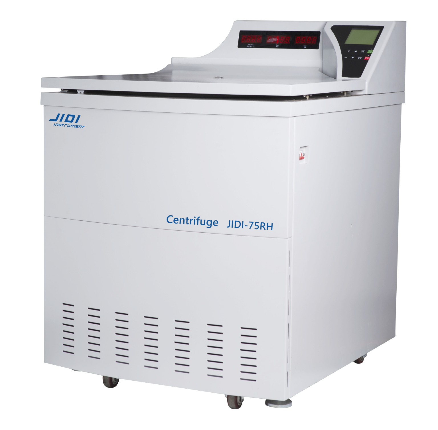 Высокоемкая лабораторная центрифуга JIDI-75RH – напольная высокоскоростная центрифуга, предназначенная для экспериментов с большим количеством образцов, в том числе для пакетов с кровью. Максимальная вместимость бакет-ротора – 8×2400 мл.